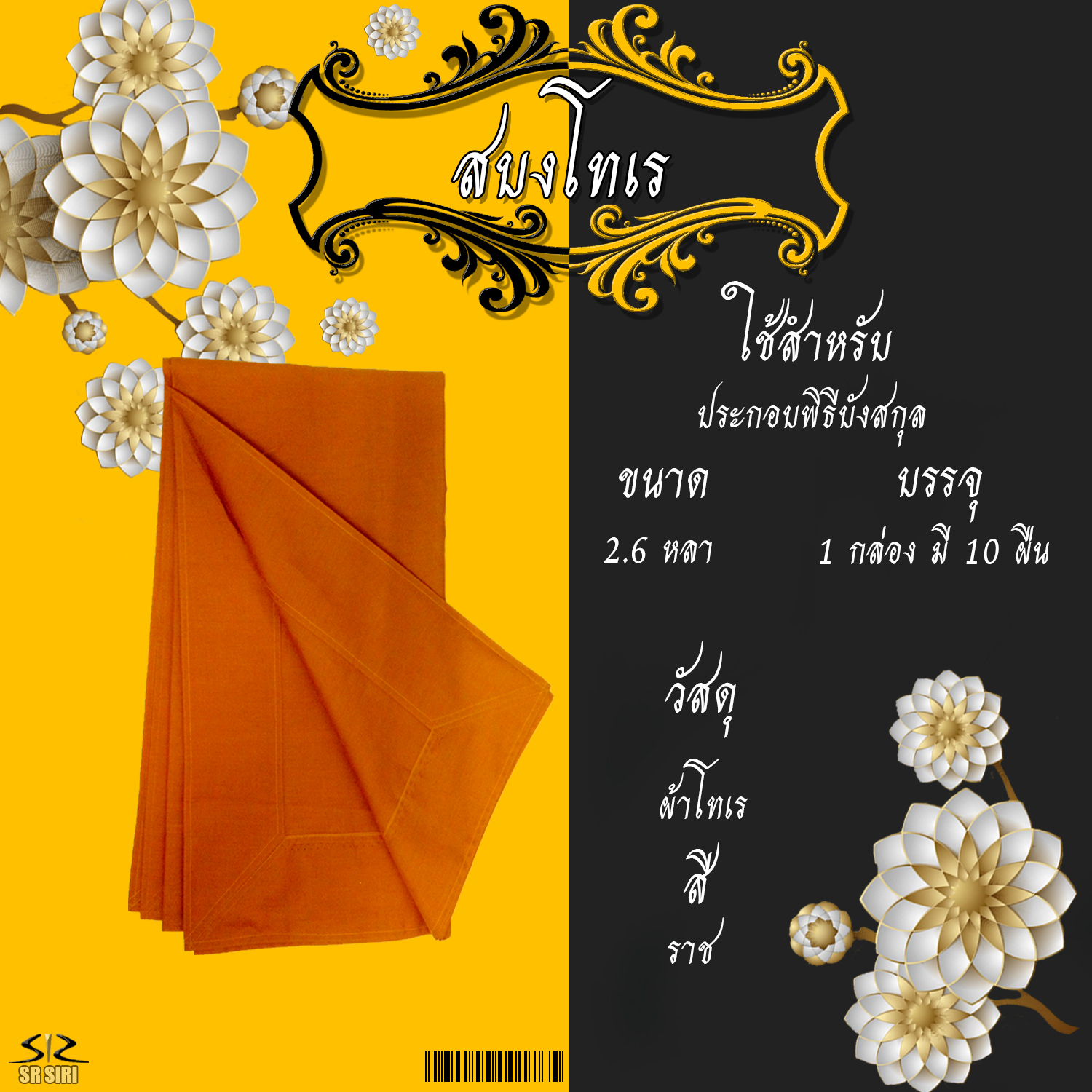 ผ้าไตรมัสลิน 9 ขัน 1.9 เมตร No.01 สีส้มกลาง/ทอง (SR) 1/5 ชุด