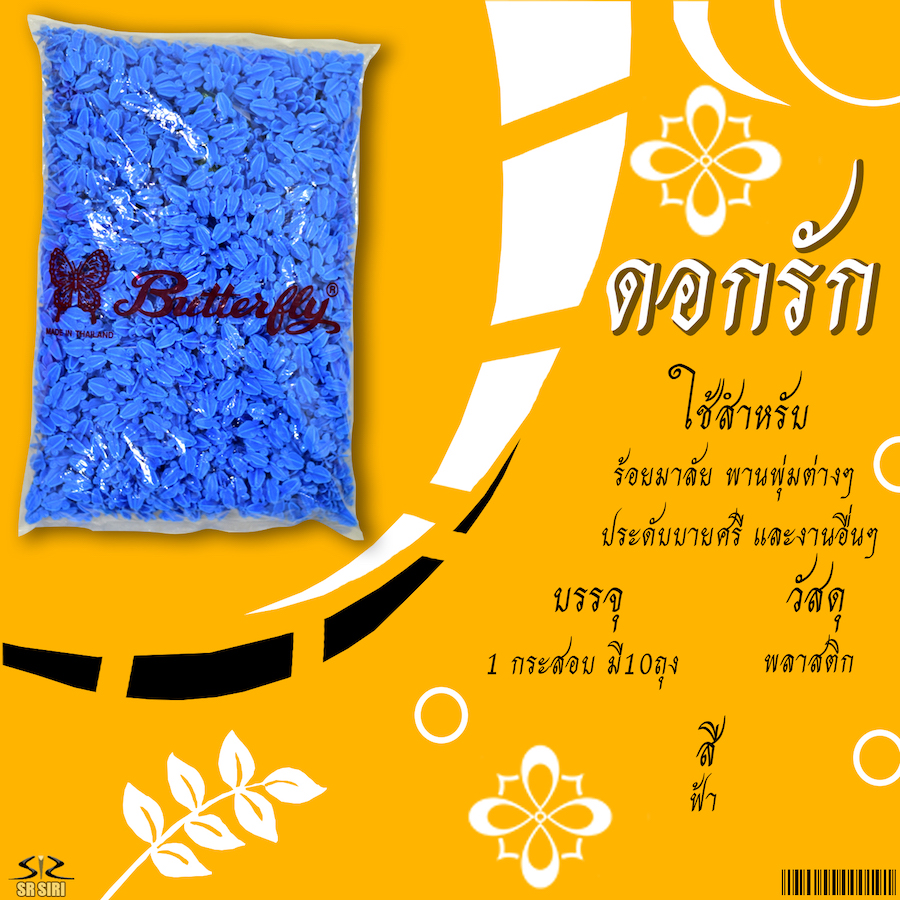 หน้าแรก > พวงมาลัย > ดอกรัก ตราผีเสื้อแดง สีฟ้า