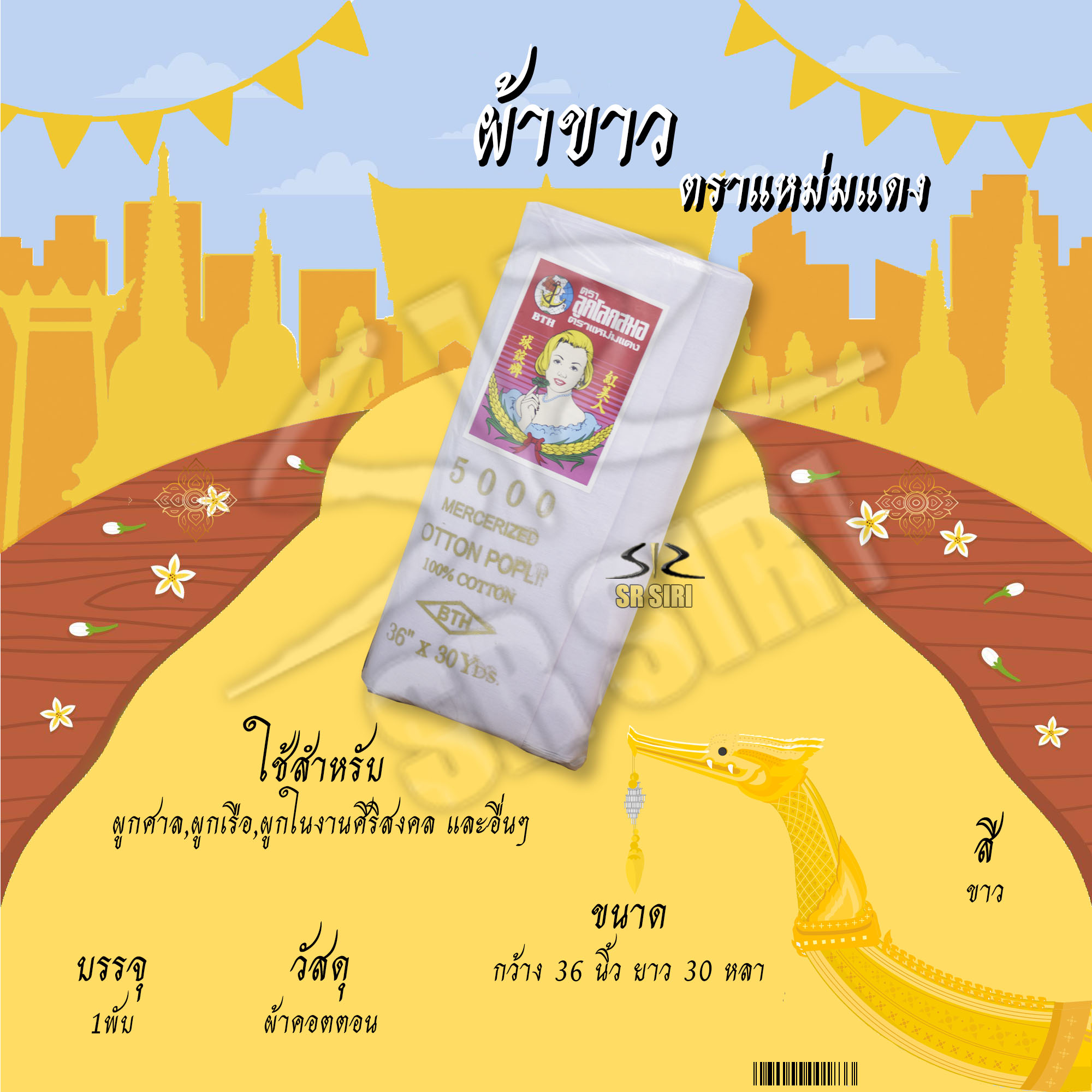 หน้าแรก > ผ้า > ผ้าตราแหม่ม สีขาว (พับ)