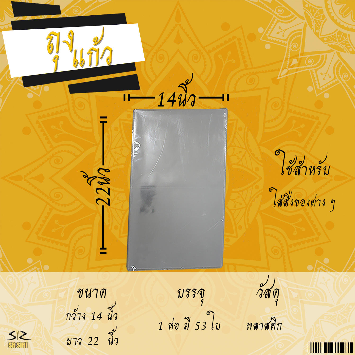 หน้าแรก > ถุงพลาสติก > ถุงแก้ว ไซด์ 14x22 นิ้ว 1/53ใบ