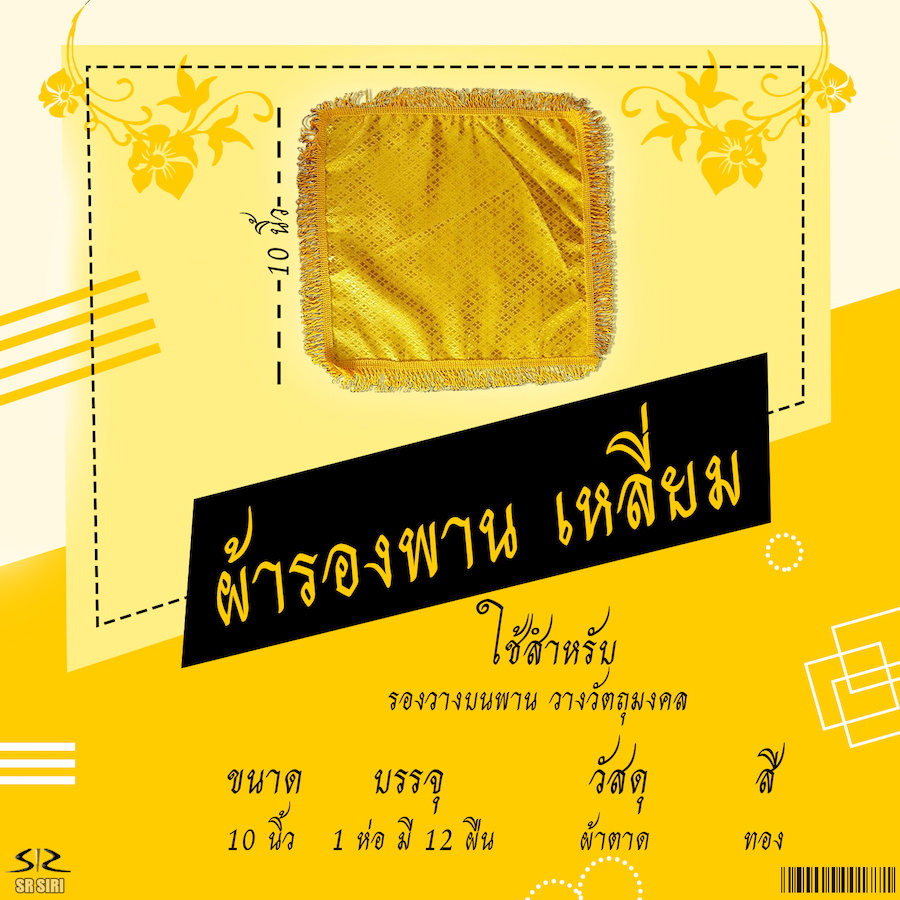 หน้าแรก > ผ้า > ผ้ารองพาน เหลี่ยม สีทอง 10" 1/12