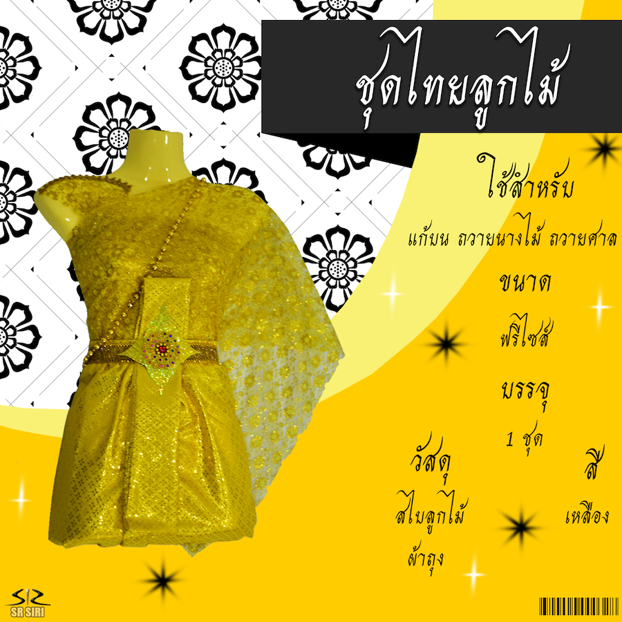 ชุดไทย ไม้แขวน(ลายไทย) สีเหลือง