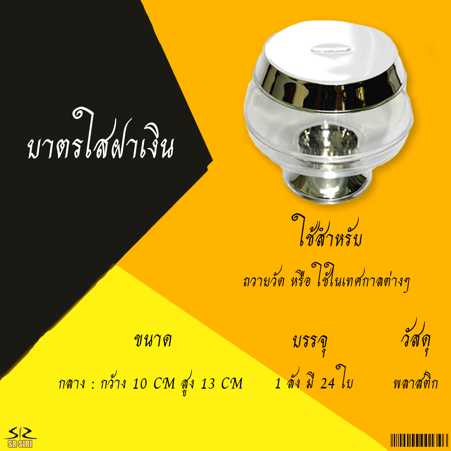 หน้าแรก > พลาสติก > บาตรใสฝาเงิน ไซด์ กลาง 1/24ใบ
