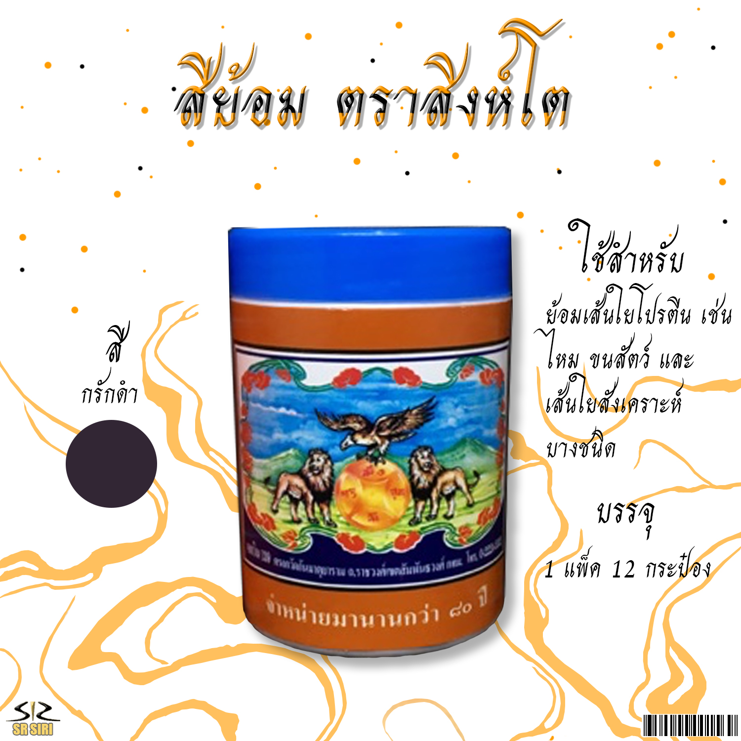 หน้าแรก > สีย้อม > ย้อมจีวร ตราสิงห์โต O สีกลัก (น้ำตาลดำ) 1/12