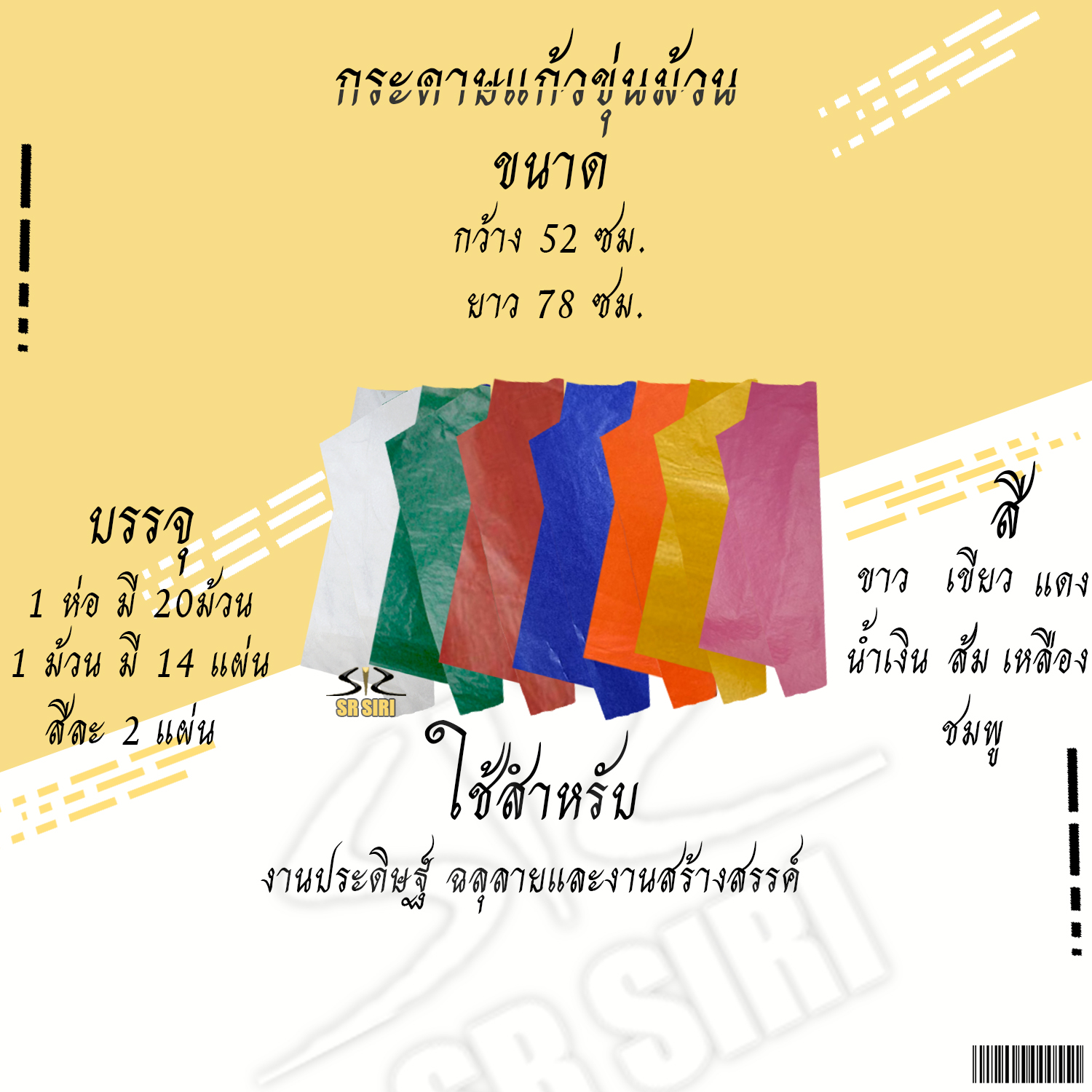 หน้าแรก > กระดาษ > แก้วขุ่น แบบ (ม้วน14แผ่น) 2แผ่น7สี 1/20