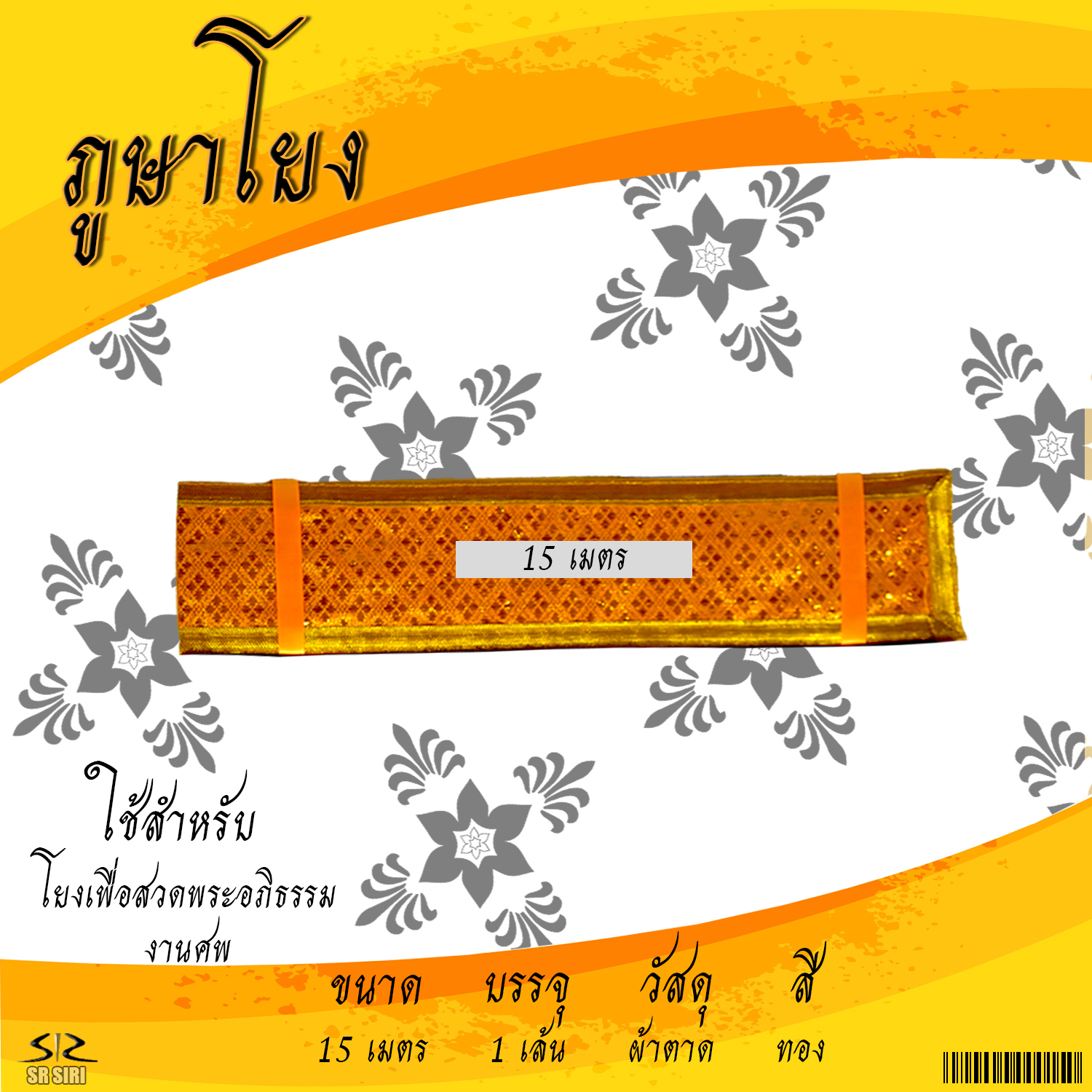 หน้าแรก > ผ้า > ภูษาโยง ไซด์ 15 เมตร สีทอง
