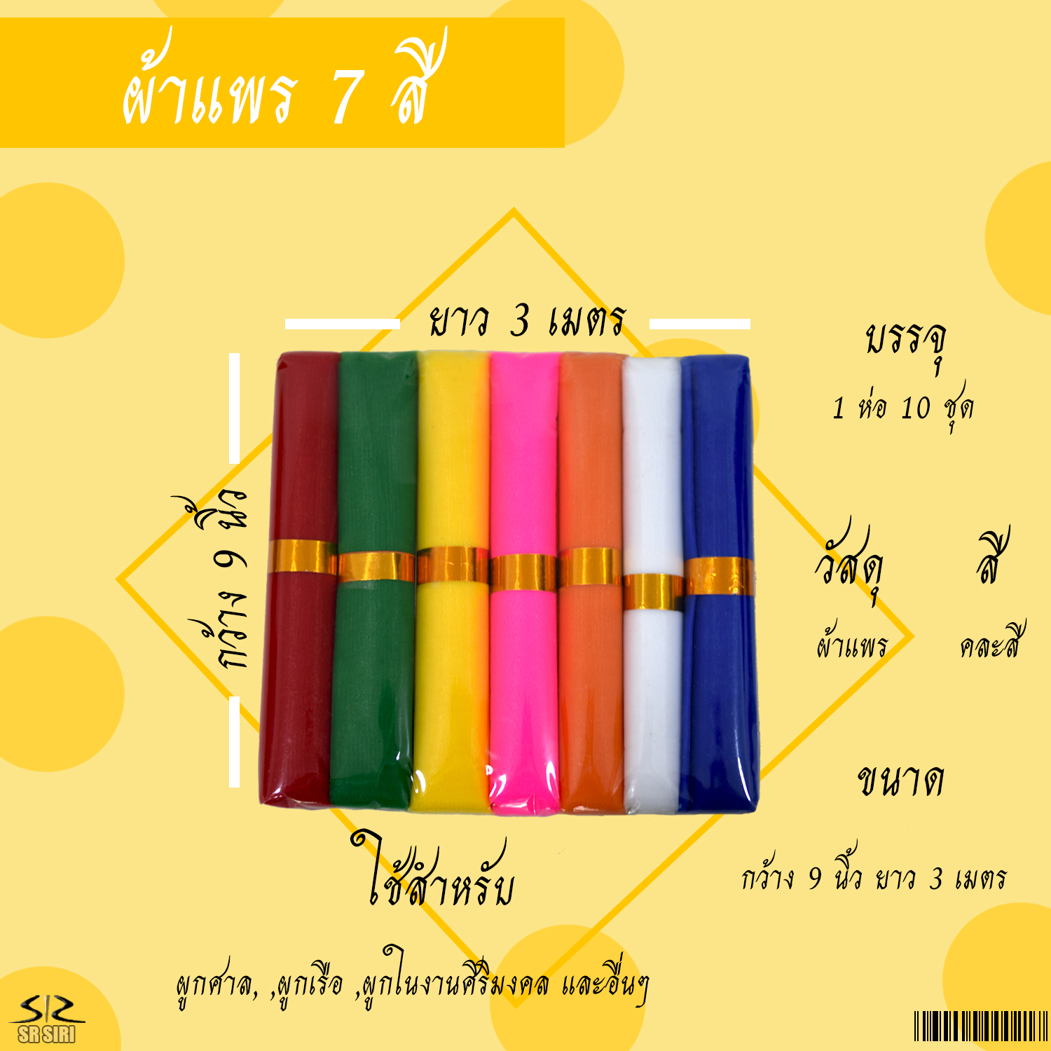 หน้าแรก > ผ้า > ผ้าแพร 7 สี 9นิ้วX3เมตร 1/10