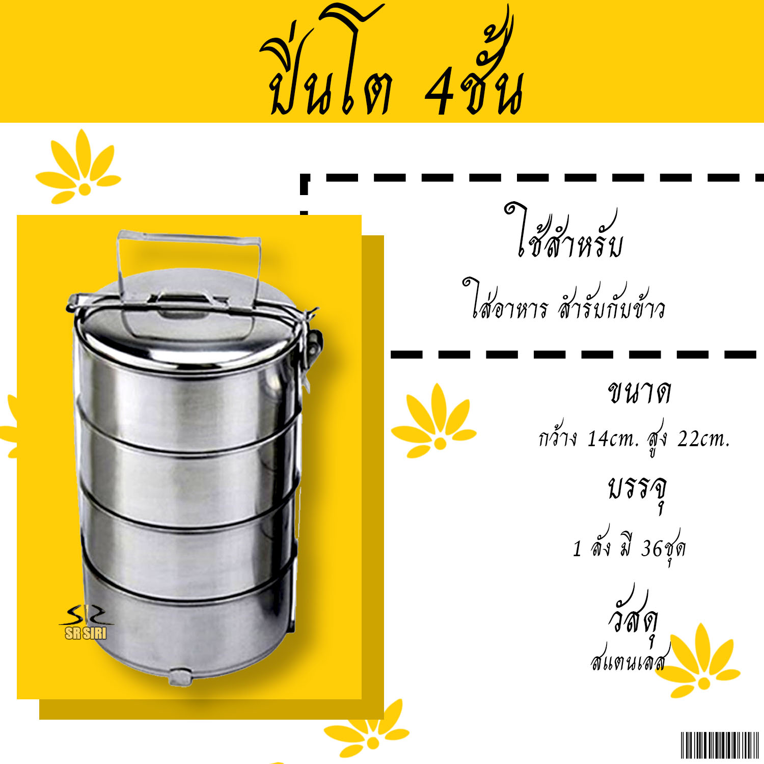 หน้าแรก > เครื่องบวช > ปิ่นโต แบบ สแตนเลส 4 ชั้น ตรา กระทิง 1/30