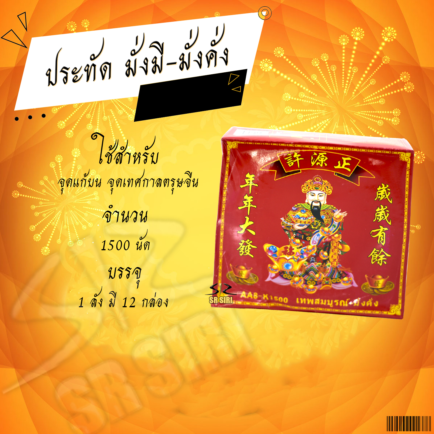 หน้าแรก > ห้ามโยน ระวังแตก!!! > ประทัด มั่งมี-มั่งคั่ง แบบ 1500 นัด 1/12 (AK1500)