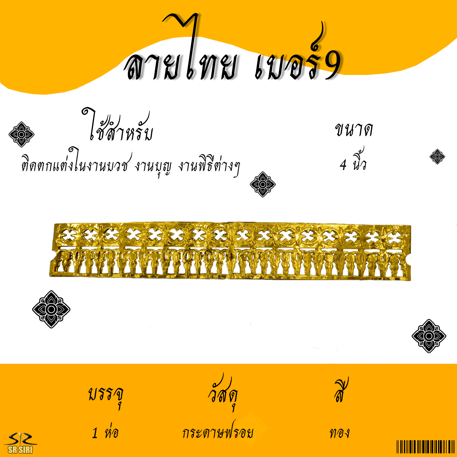หน้าแรก > กระดาษ > ลายไทย เบอร์9 4นิ้ว สีทอง 1/20แผ่น