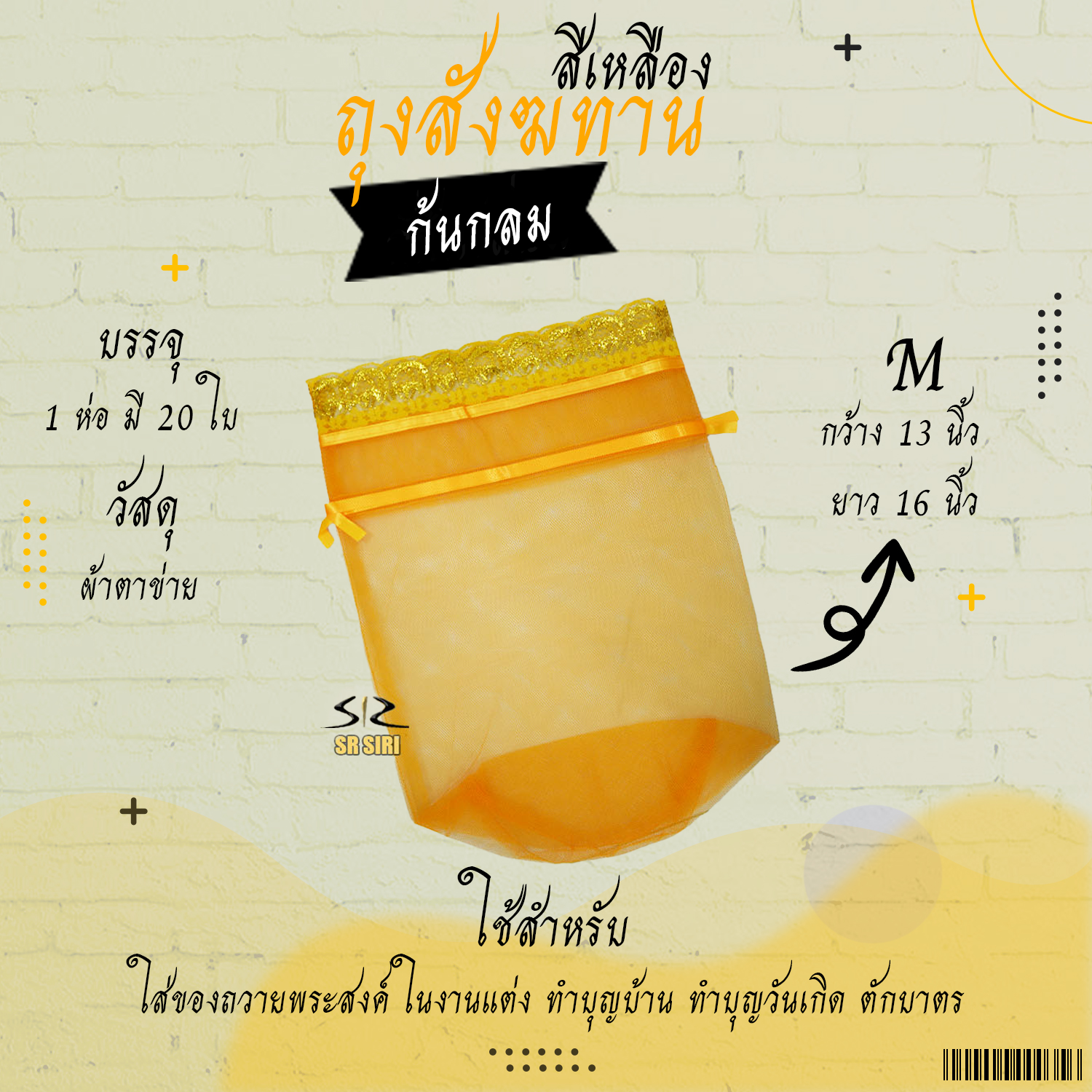 หน้าแรก > ผ้า > ถุงสังฆทานสีเหลือง ไซด์ M กลม 20/1 (SR)