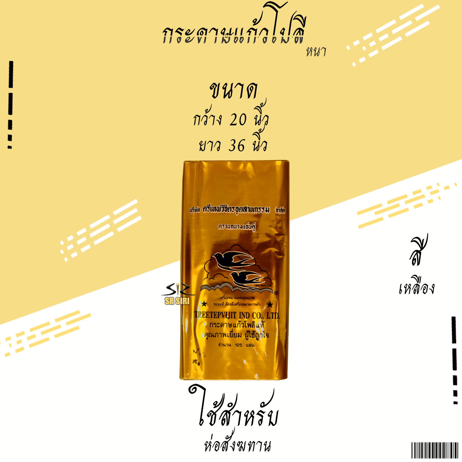หน้าแรก > พลาสติก > แก้วโพลี สีเหลือง ตรานางแอ่นคู่ 1รีม/4ห่อ/125แผ่น