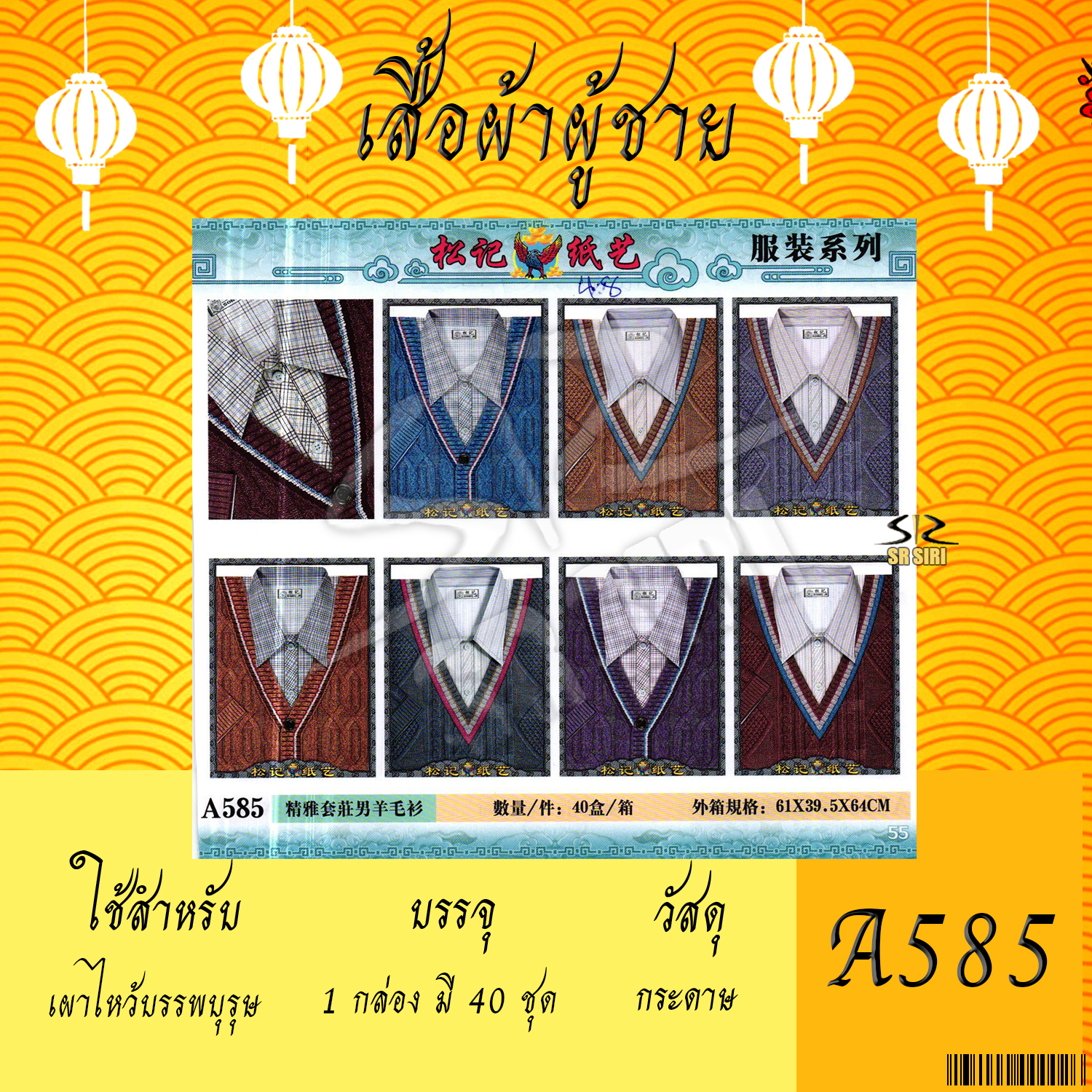 หน้าแรก > เครื่องเจ้าจีน > เสื้อชาย แบบกันหนาวไหมพรม A585 1/40