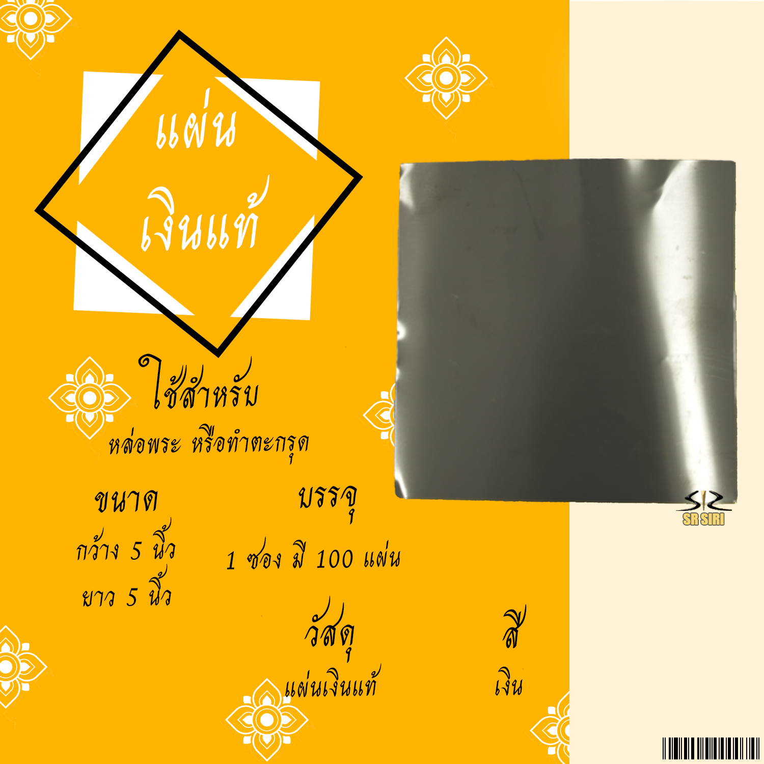แผ่นโลหะ ชนิด เงินแท้ 5x5นิ้ว 1/100แผ่น